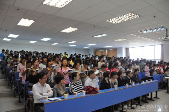 “健康所系,性命所托。当我步入神圣医学学府的时刻,……我决心竭尽全力除人类之病痛,助健康之完美……”,伴随着同学们铿锵有力的坚定誓言,全体2012级新生进行了医学生步入医学殿堂的第一堂课,更是人生道路上很重要、很有意义的一堂课——神圣的医学生誓言宣誓活动。