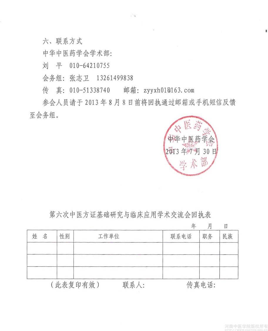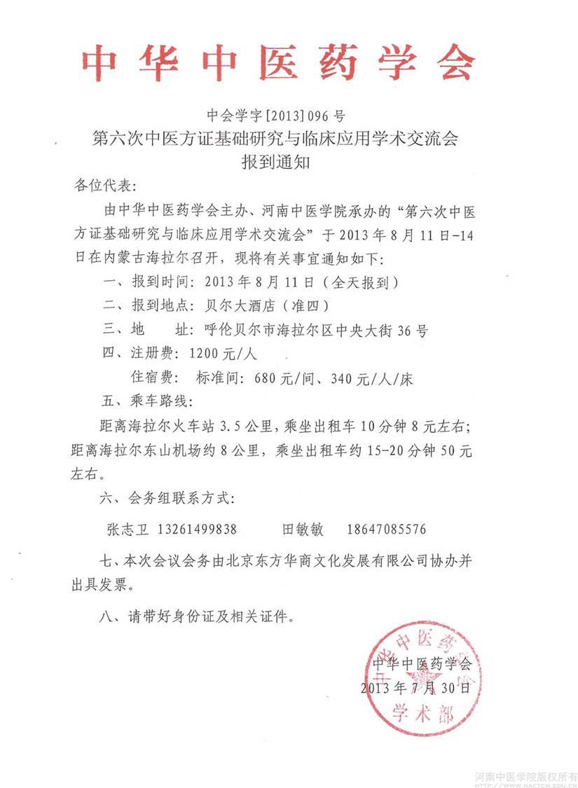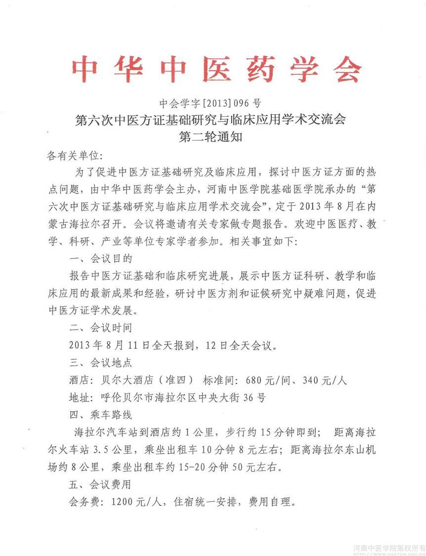 中华中医药学会-第六次中医方证基础研究与临床应用学术交流会第二轮通知