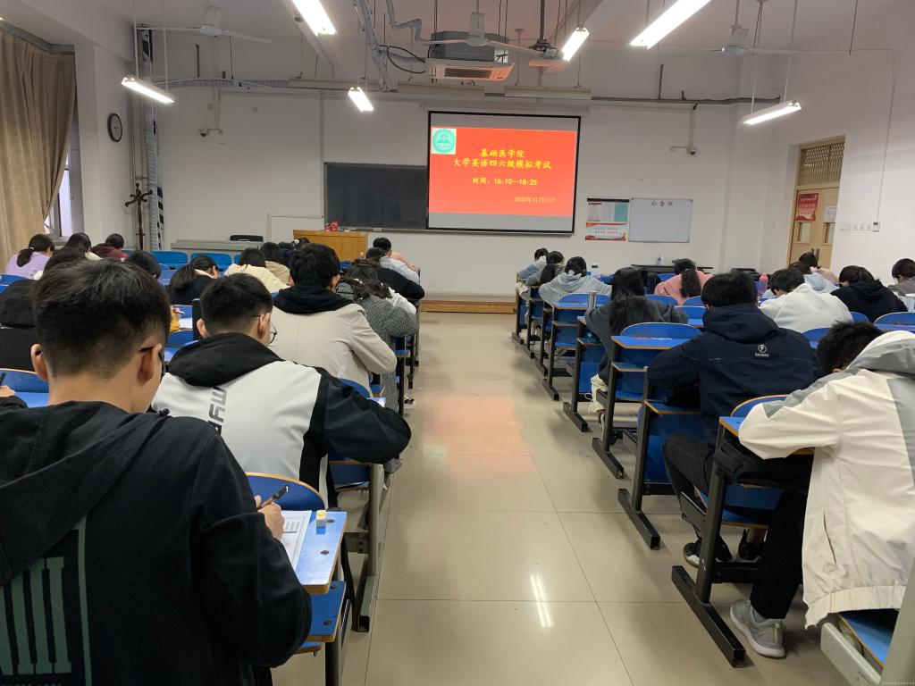 为了迎接即将到来的全国大学生英语四六级考试,提高应试能力和英语水平,给学生们提供一个自我检测的机会,基础医学院于11月17日举办了2020年本科生大学生英语四六级模拟考试。