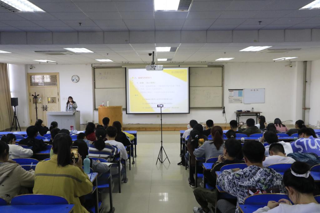 讲座伊始,刘淘淘老师结合自身专业知识列举了公文写作在日常生活中的重要性,强调良好的公文写作能力是学生干部必备的技能之一,并从“积累知识”、“学习模仿”、“模仿再学习”和“独立写作”四个方面阐释了公文写作的规律性入手,详细介绍目前常用应用文的概念、种类、写作方法和注意事项。其次,刘老师就什么是新闻、新闻的种类、新闻的特点、新闻六要素、新闻五大结构以及新闻写作的技巧等六个方面展开了全方位的教学指导,详细阐释了每一种新闻稿的特点和相关要求,让同学们对公文写作的认识更加清晰明了。最后,刘老师还特别告诫同学们在公文写作中应着重思考对象需求、角度选择、语言凝练、框架设置等细节。现场同学都认真详细的做笔记,把老师所传授的知识记在心里,为以后公文写作打下基础。