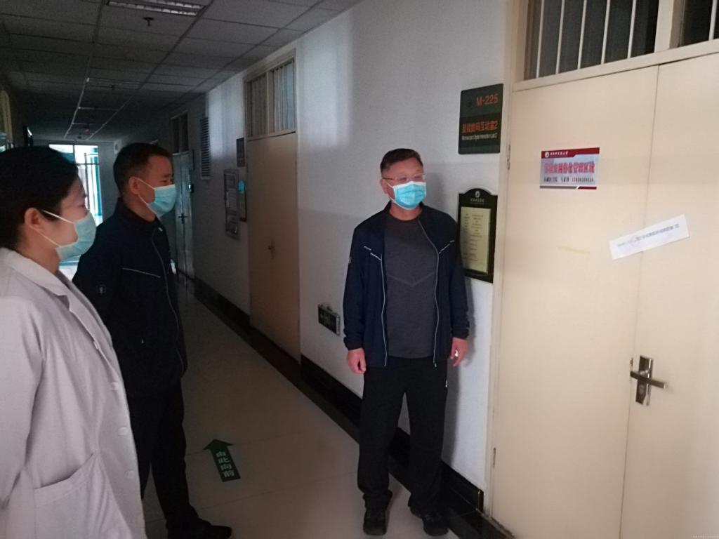 在学校学生返校复学之际,为进一步落实好学校疫情防控要求,扎实做好学院消防安全工作,消除安全隐患,杜绝安全事故发生,切实保护师生生命财产安全,2020年5月8日上午,学院副院长李肇进带领党政办老师深入科研实验中心、实验教学中心各实验室进行安全检查。