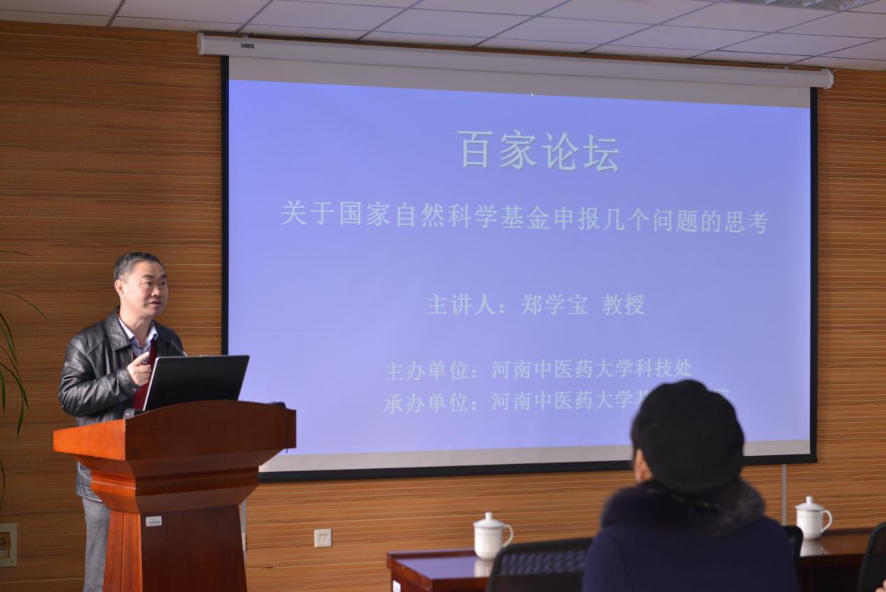 2020年1月17日上午,由科技处主办、基础医学院承办的“百家论坛”在教学大楼B区八楼BS820会议室举办。广州中医药大学教授、主任医师、博导、中国中西医结合协会常委,广东省中西医结合学会副会长郑学宝作客“百家论坛”,全校近百名教师和研究生聆听了讲座。