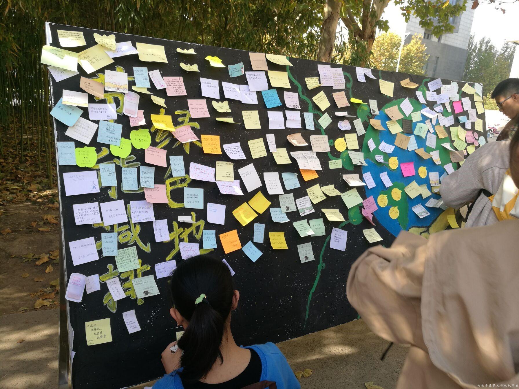 活动前期,志愿者在餐厅前布置展板对节能减排知识和“地球一小时”活动进行宣传和科普,且利用午餐时间组织来往同学在节能活动宣传展板上粘贴便利贴,并在便利贴上书写他们对绿色环保精神的理解,志愿者也送出小礼物表达对同学们支持的感谢。期间,参加活动的同学晚八点至九点自发关灯一小时,集合至西操场进行小型联谊,收获了友谊和对低碳生活的切实体验。在本次活动中,有许多同学迸发自己的灵感与热情,将自己对于绿色地球的理解以视频的方式记录下来,在联谊之时同学们互相观看视频,分享自己的制作创意。“地球一小时”节能活动看似轻微,其实是对现代生活理念的改变,激发了人们保护地球的责任感,以及对气候变化等环境问题的思考。