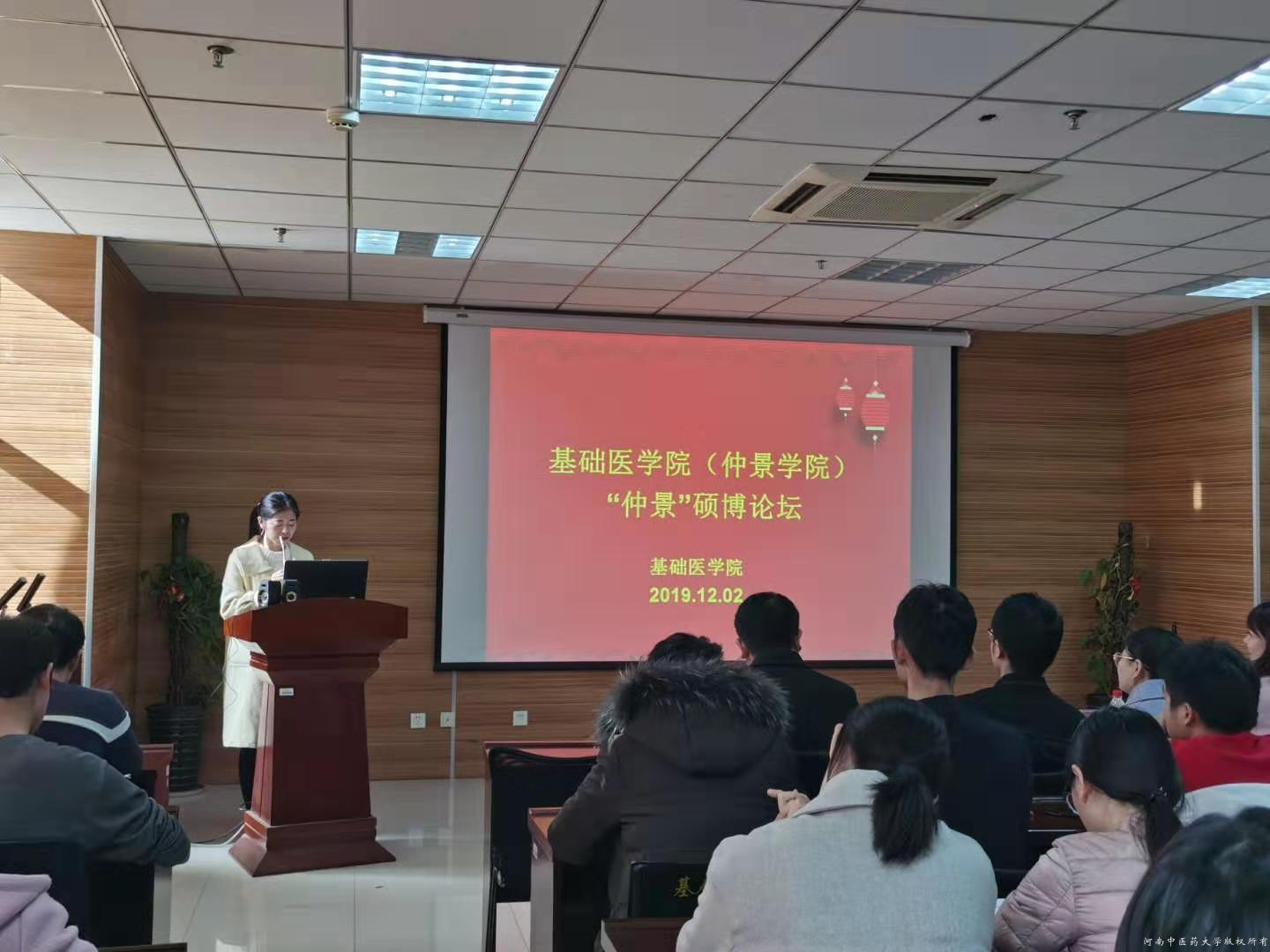 为进一步加强研究生的科研交流与学术素养,提高研究生科研学术水平,全面提升研究生培养质量,基础医学院2019年度第四期研究生硕博论坛于2019年12月2日中午在教学实验大楼BS820会议室举行。本次大赛邀请基础医学院中医基础理论教研室刘紫阳博士、中西医结合教研室侯俊林博士、学工办戴冰星老师担任评委。基础医学院全体研究生参加此次论坛,论坛由2019级硕士研究生张艳主持。