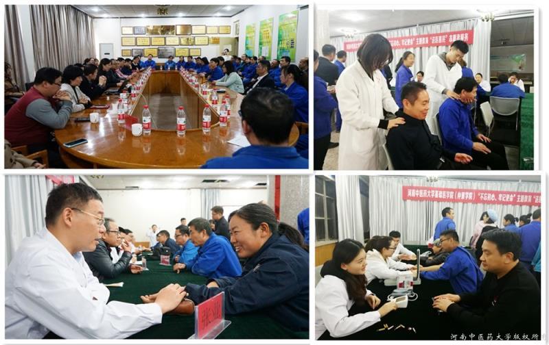 为扎实开展基层支部主题教育,2019年11月12日,基础医学院中医诊断与方剂学联合党支部、人体解剖与组织胚胎学党支部与研究生第一党支部赴郑州拓洋实业有限公司开展“送医惠民”志愿者服务。