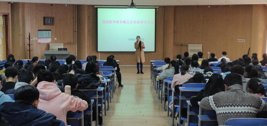2019年11月19日,为使临床医学专业学生进一步了解当下医学教育的概况、为学生指明学习方向和提高学习效率,基础医学院邀请病理学与病理生理学教研室陈芳副教授为2018和2019级临床医学专业学生举办了以“我国医学教育概况及系统学习方法”为题的专题讲座。