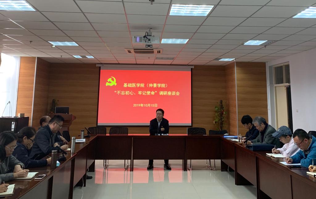 为认真落实主题教育“守初心、担使命,找差距、抓落实”的总体要求,2019年10月15日,基础医学院党委书记禄保平带队在BS820与医学史教研室、各家学说教研室、医古文与中医文献学教研室教师进行调研座谈。