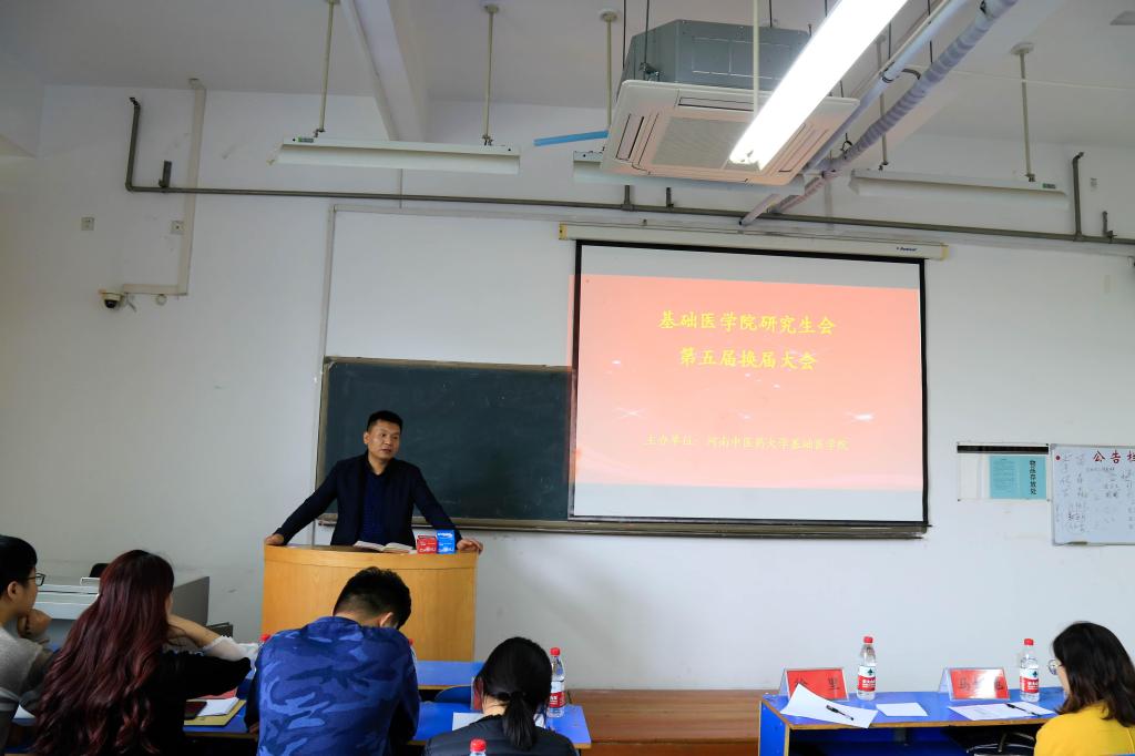 10月14日中午,基础医学院研究生会第五届换届大会在教学楼A204顺利召开。基础医学院党委副书记徐里、学工办主任刘旭初、分团委书记李倩等学工办、研工办的老师出席本次大会。大会由学院第四届研究生会副主席楚天云同学主持,基础医学院2019级全体研究生参会。
