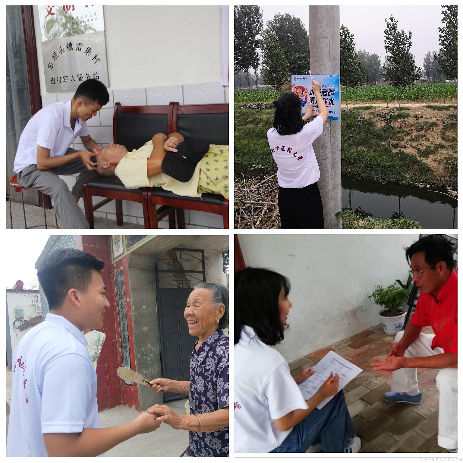 上午8:30,到达雷集村党群服务中后,团队成员按事前的分工安排,配合密切,“兵”分两队,一队在闫辉、刘淘淘老师的带领下前往村户人家进行中医药知识宣讲,儿童防溺水宣传,调查问卷、防艾滋病手册发放,村民们热烈欢迎并认真聆听,在得知义诊消息后欣喜前往活动现场。另一队则跟随随队专家、硕士生导师谢忠礼、郑攀,在活动现场进行医疗义诊和临床治疗。在雷集村干部和队员们的宣传下,村民们纷纷赶来,活动现场车水马龙。两位随队专家在诊治过程中,细心诊查,耐心询问村民不适,察色按脉并进行中医特色诊疗——针灸推拿服务,给每一位前来咨询的群众合理的诊治。团队成员在此过程中积极为前来的村民测量血压、血糖,并现场教授五禽戏、八段锦等中医传统养生保健良法,传授健康生活饮食、常见疾病预病知识。
