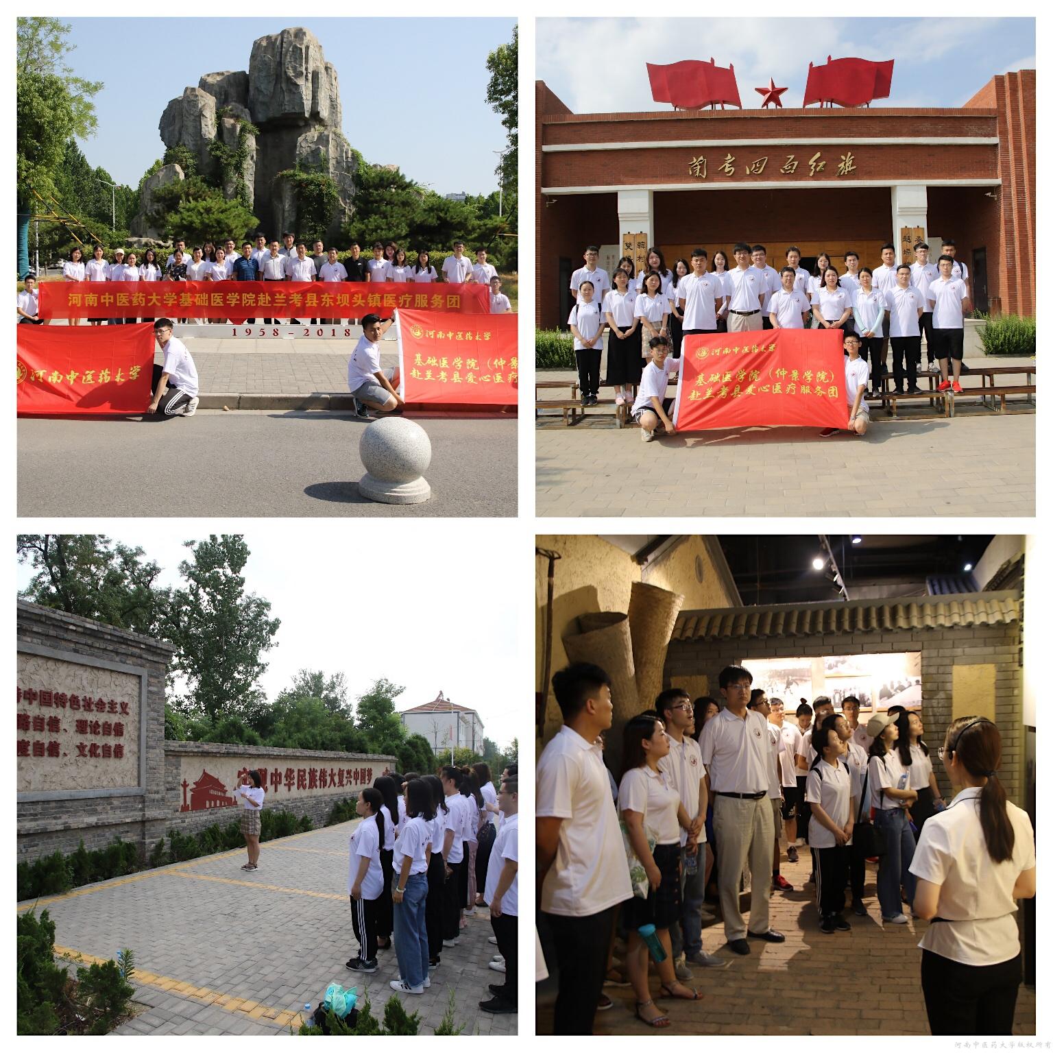 青春心向党,建功新时代。2019年7月7日上午9时,基础医学院赴兰考县医疗服务团一行26人在校团委书记高磊,学院领导班子及学工办、分团委老师的嘱托及送别后,从新校区出发奔赴兰考县开展为期七天的暑期“三下乡”社会实践活动。为强化使命担当,感受红色文化,医疗服务团到达兰考首日便前往兰考县四面红旗纪念馆和习近平总书记第二批党的群众教育实践活动联系点—张庄村参观学习,近距离感悟、学习焦裕禄四面红旗精神,体会社会主义新农村的新变化、新风貌。