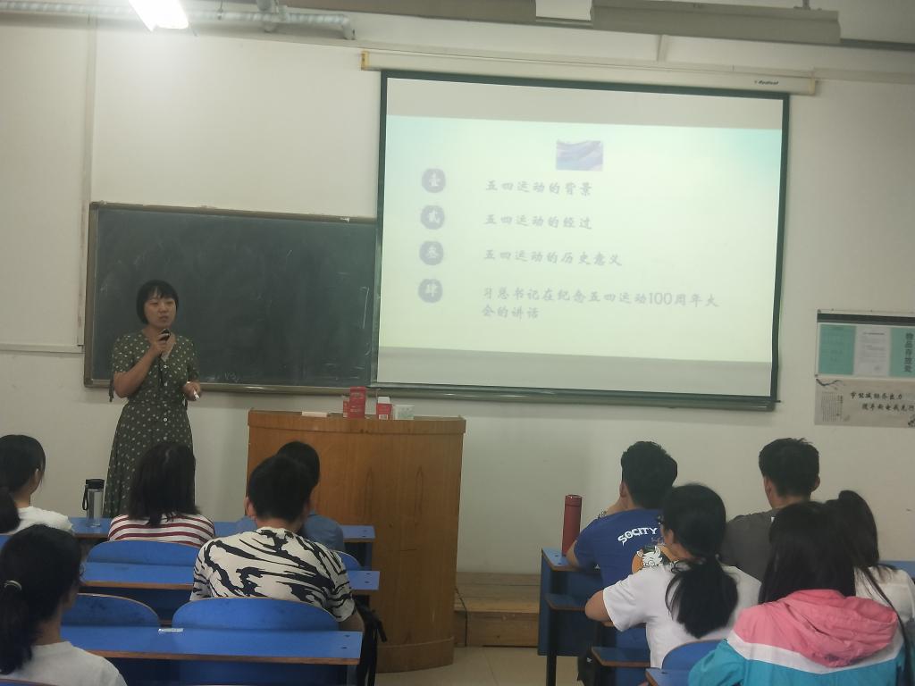 两位老师前期认真学习体会讲话精神,精心准备课件,认真备课,并从“六个伟大:高度评价五四运动的历史意义”、“六个要:勉励新时代中国青年建功立业”、“做好三种人:确保党的事业薪火相传”、“青年英雄:驱动中华民族加速迈向伟大复兴的蓬勃力量”、“党旗所指就是团旗所向”、“让青春焕发出更加绚丽光彩,奋力谱写壮丽的青春篇章”六个方面详细解读了习近平总书记在纪念五四运动100周年大会上的重要讲话精神,广大团员学生认真听讲、积极思考,深刻领会讲话精神,明确五四运动在近代以来中华民族追求民族独立和发展进步的历史进程中的里程碑意义,牢记习近平总书记谆谆寄语,明确要在党的领导下,自觉承担起实现中国梦的历史使命和时代责任,在为祖国、为人民、为民族、为人类的奉献中焕发出更加绚丽的光彩;在实现中国梦的伟大事业中铸就人生梦想,奋力谱写壮丽的青春篇章!