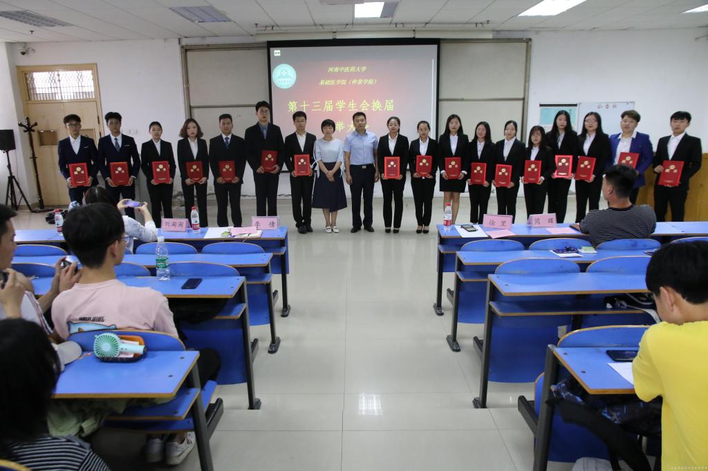 5月15日中午,基础医学院在四楼阶教举办了第十三届学生会换届选举大会,基础医学院党委副书记徐里、分团委书记李倩、辅导员闫辉、刘淘淘、第十二届学生会全体成员以及各班学生代表参加了此次大会。