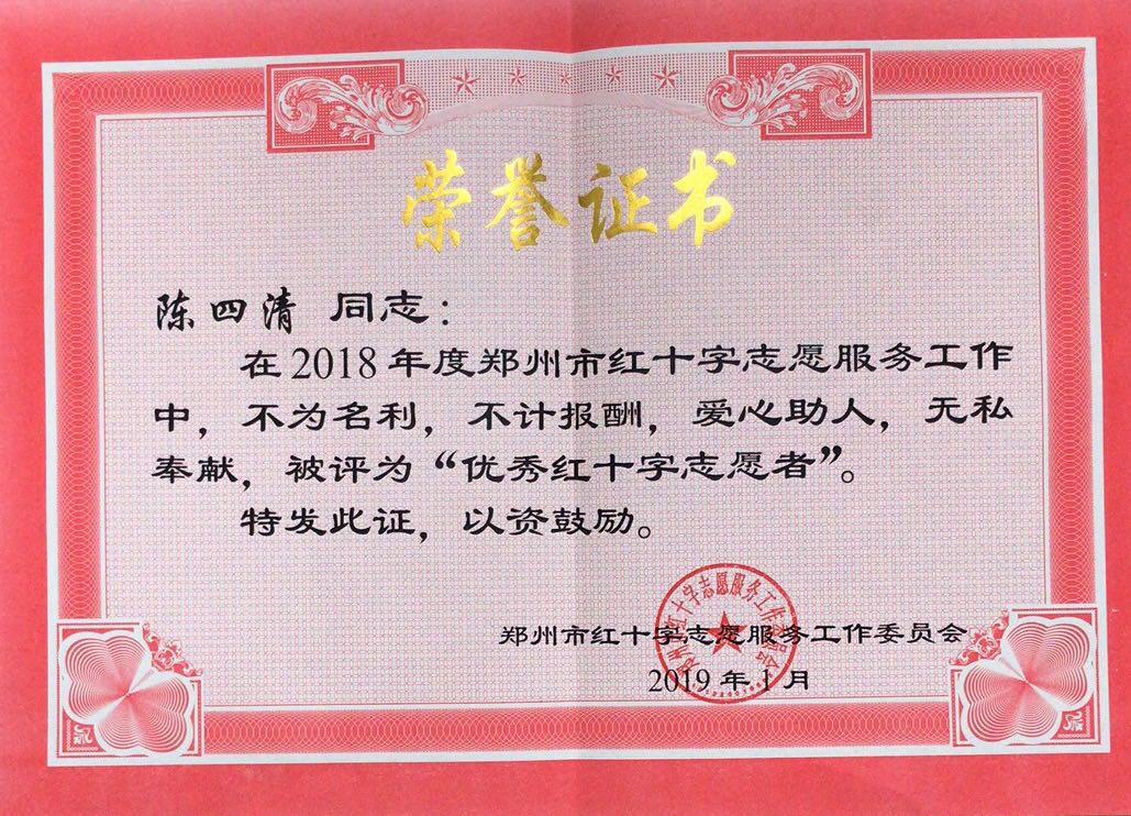 咕咕番 基础医学院陈四清教授获2018年度郑州市 “优秀红十字志愿者”称号