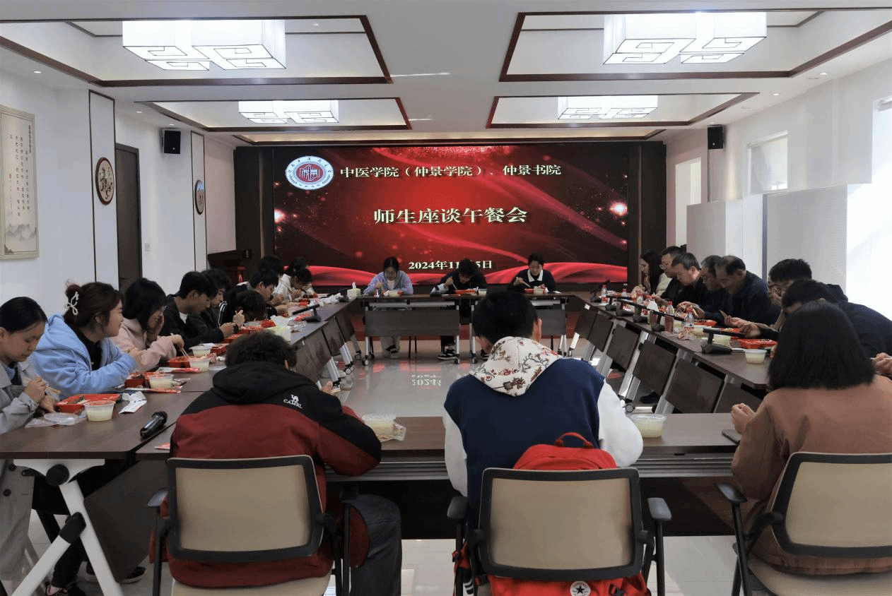午餐会在轻松愉快的氛围中进行,参会学生代表依次发言,介绍个人情况,分享入学以来的感受和体会,并畅谈对未来学业的规划和目标。2024级中医学本科四班的郭晨博同学分享到:“自己非常热爱中医学专业,对目前的中医基础理论课程尤为感兴趣。”2021级中医学仲景一班的赵子淇同学也分享到:“每周的跟诊学习能让自己接触了解到更多的临床知识,从而对相关课程产生更浓厚的兴趣。”同时,围绕书院建设、服务保障、学业规划、科研竞赛、晨读晨训等方面,同学们也都提出了困惑、想法和建议。