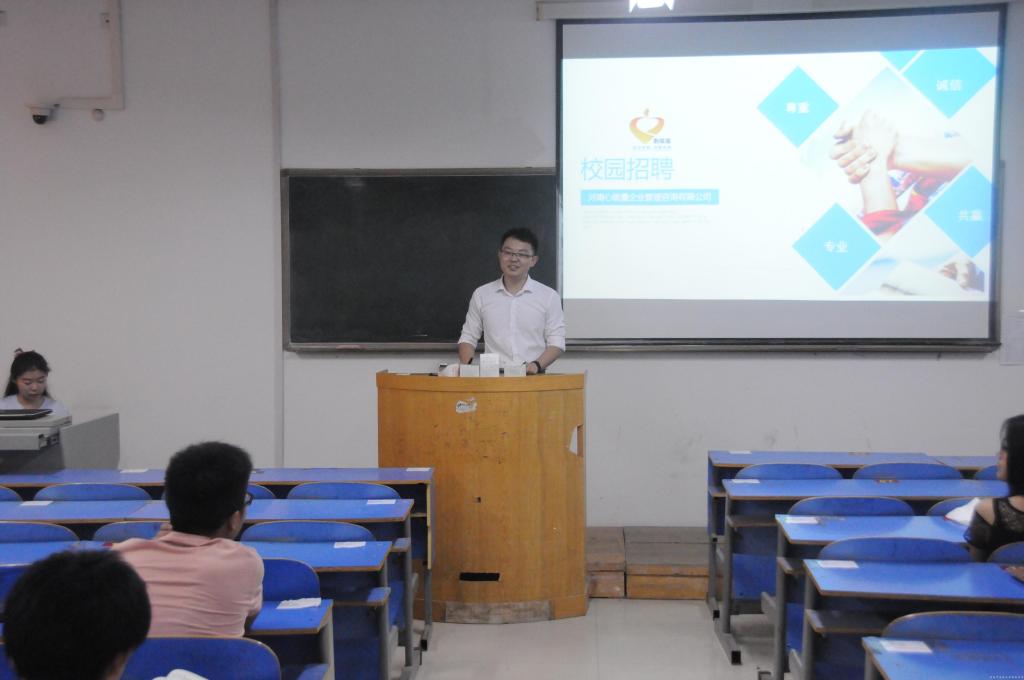 为进一步拓展2018届毕业生的就业渠道,基础医学院(仲景学院)于6月12日上午,在教学楼A218举行了一场面向本科生、研究生的毕业生专场招聘会。本次招聘会特邀河南心能量企业咨询有限公司赵远中总经理进行宣讲,基础医学院(仲景学院)学工办主任刘旭初、心理健康教育与咨询中心付蓉老师、兼职辅导员高鹏以及咕咕番 十数名毕业生参加了此次招聘会。