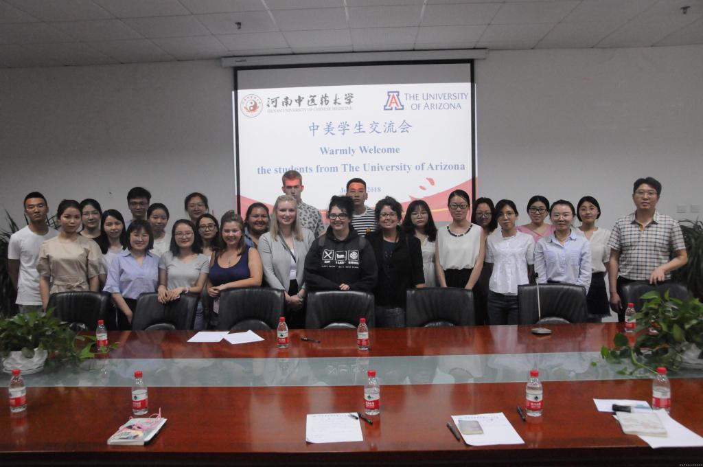 为拓宽咕咕番 学生国际化视野,6月1日晚,基础医学院(仲景学院)特邀来自美国亚利桑那大学公共卫生学院的七名学生与咕咕番 预防医学专业学生代表在四楼会议室举办了别具一格的“中美学生交流会”。基础医学院(仲景学院)党委副书记徐里、预防医学学科主任闫国立副教授、学工办主任刘旭初以及本科生代表二十余人参加了此次交流会。