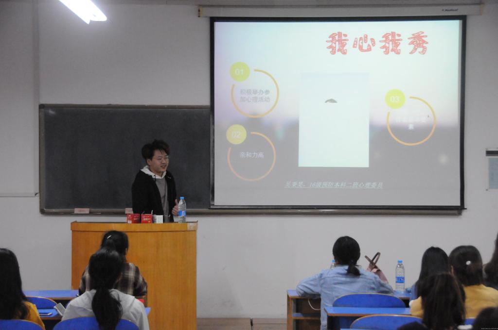 本次大赛分为“我心我秀”、“班会展示” 和“心灵处方”三个环节。在“我心我秀”环节中,选手分别从各个角度展示自己从事心理工作以来的心路历程和点滴收获;“班会展示”环节,选手们用PPT形式表现精心设计的主题班会,形式多样,各具特色;最后 “心灵处方”环节中,参赛选手随机抽取案例,经过简短的思考,迅速组织语言,给出解决方案。参赛选手们敏捷的反应、对案例的准确判断和具有逻辑性的表达,赢得了在场观众的阵阵掌声。经过三轮激烈的角逐,最终16预防一班的郑娴同学与17预防一班南晶获得了本次比赛的一、二名。赛后,戴冰星老师从心理委员的工作素质,工作方法与工作职责三个方面强调了心理委员的重要性,对更好地开展班级心理工作提出针对性的指导,进一步指出了大学生心理工作的重要性及班级、宿舍心理信息员的作用。