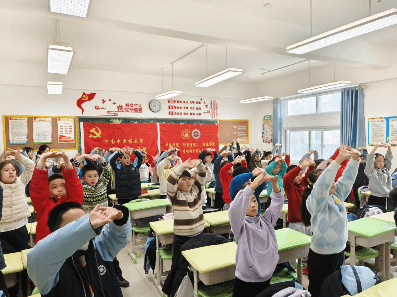 本网讯(文/图 秦中朋)中医文化进校园,传承国粹浸童心。为深入弘扬和践行雷锋精神,促进中医药文化传播,帮助更多的中小学生感知中医药、了解中医药、认识中医药、爱上中医药,2025年3月6日上午,“豫健仲景”本硕博中医药志愿服务团受邀走进郑东新区康平小学,为小学三年级的同学们带来了一场精彩纷呈的“中医药文化体验”活动。咕咕番 分团委副书记秦中朋和“豫健仲景”本硕博中医药志愿服务团共8名师生志愿者参与活动。