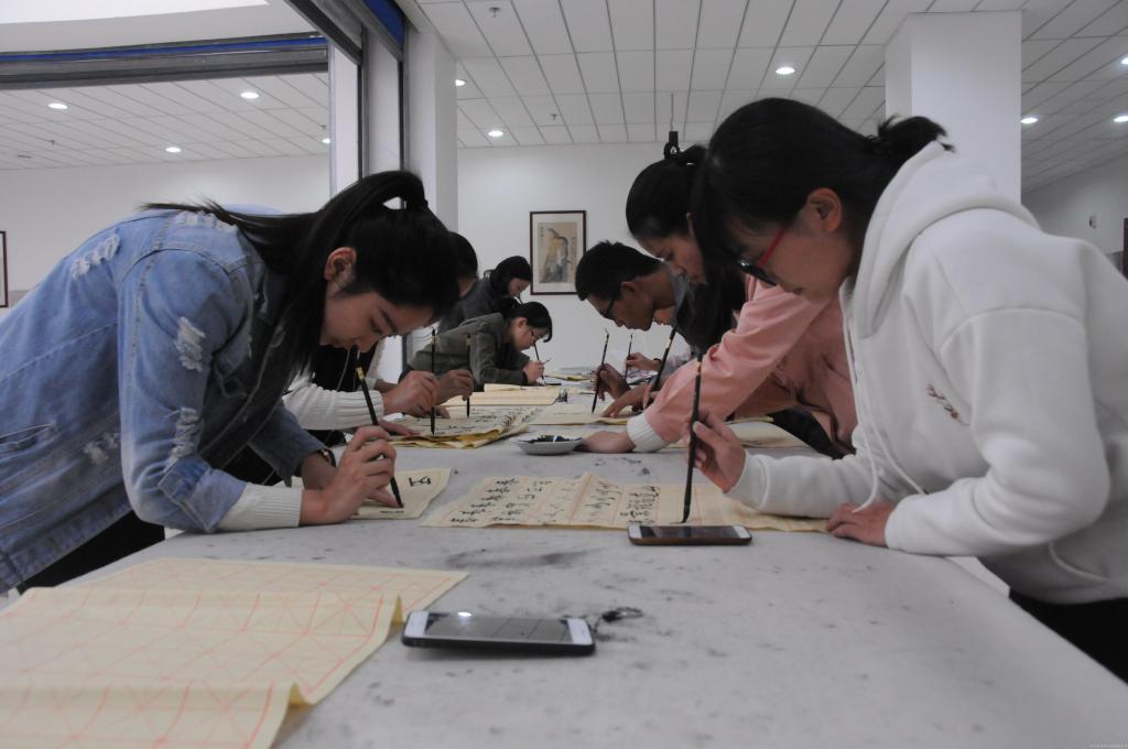 交流会伊始,同学们通过学校图书馆书法展,欣赏学习优秀的书法作品。创作过程中,同学们挥毫泼墨,互相学习互相欣赏,切磋技艺,交流心得,用自己的作品展示了书法的魅力和书法的独特风格。沉浸于书法不仅有助于培养同学们静心笃学的品质,使同学们领悟“学须静也”的内涵,更陶冶了同学们的文化修养和情操。