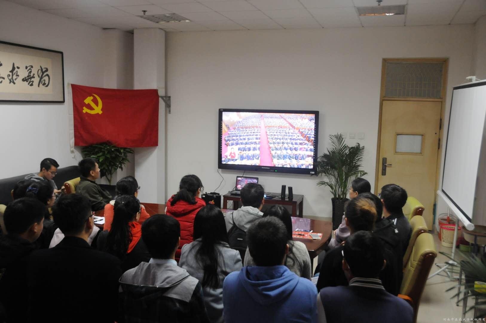 10月18日上午9时,中国共产党第十九次全国代表大会在北京人民大会堂隆重召开,基础医学院本科生党支部组织30多名师生党员在教学楼A457集中收看十九大开幕盛况,聆听、学习习近平总书记代表第十八届中央委员会向大会作的题为《决胜全面建成小康社会夺取新时代中国特色社会主义伟大胜利》的工作报告。
