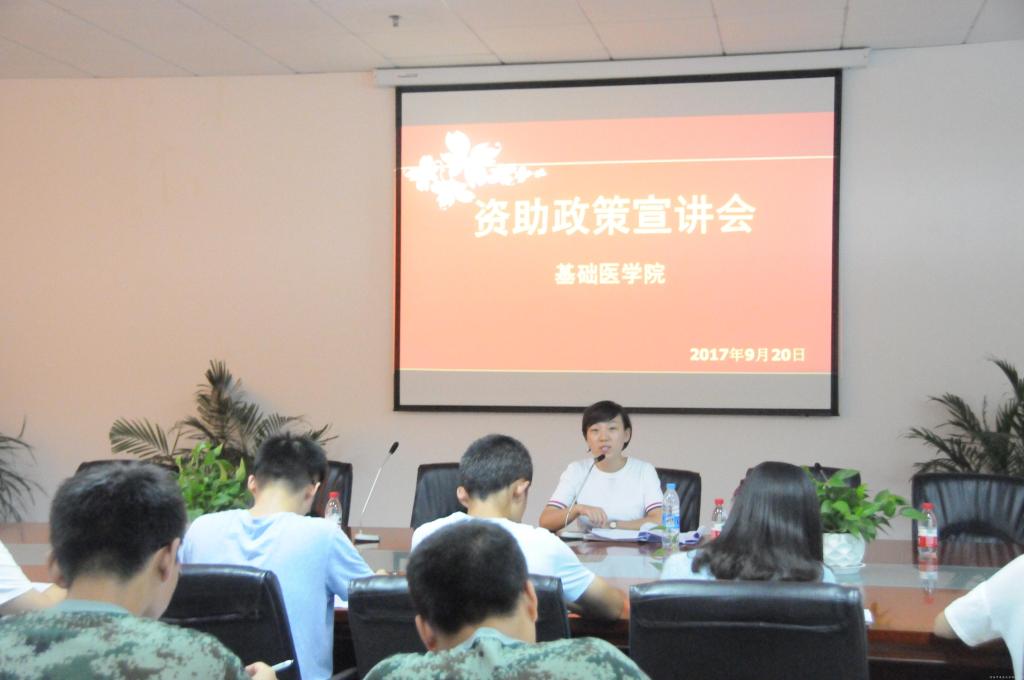 为落实学校2017年学生资助工作会议精神,切实做好咕咕番 本年度资助工作, 9月20日下午,基础医学院于四楼会议室召开资助政策的宣讲会。咕咕番 资助专员李倩老师、学贷助理岳淑琴、张进利、各班资助负责人和学生代表参加会议。
