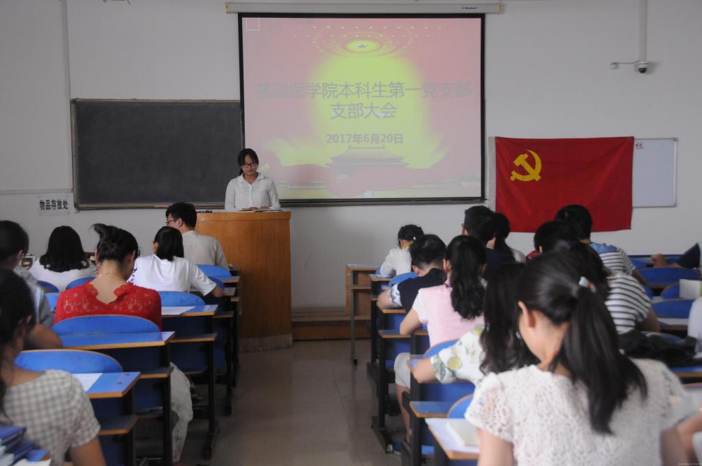 6月20日下午,基础医学院2017届毕业生党员教育大会在教学楼A441举行。基础医学院本科生第一党支部全体毕业生党员参加。活动有支部书记刘旭初老师主持。