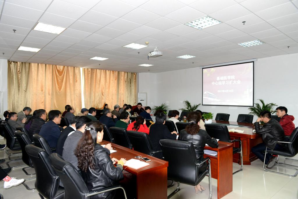 2017年4月11日下午,基础医学院召开专题会议,学习省高校思想政治工作会议精神和别荣海书记的大会发言。基础医学院领导班子成员、各科室负责人、各支部书记、重点学科带头人参加了会议。会议由基础医学院党委副书记朱平生同志主持。