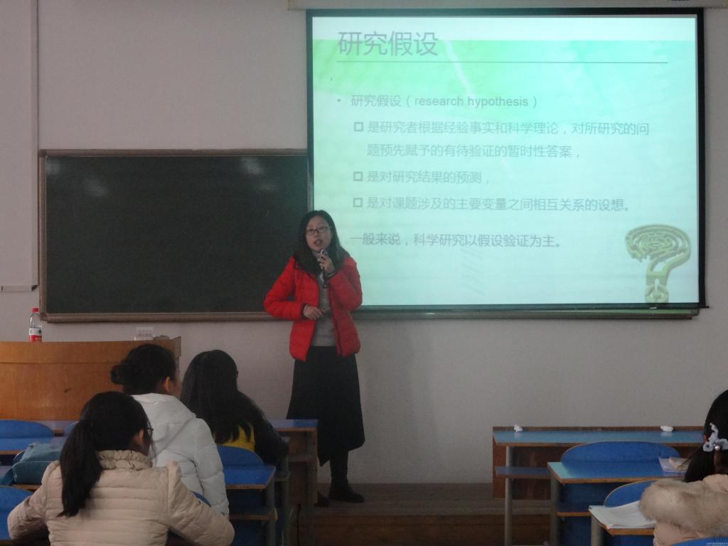 讲座现场,朱珠老师首先向同学们抛出三个问题,分别为“什么是科学研究”、“为什么要搞科研”“要怎样搞科研”,引发在场同学深思。接着,朱老师从“提出假设”、“制定研究计划”“实施研究”三个方面展开阐述,并引用爱因斯坦的名言“提出一个问题往往比解决一个问题更重要”告诫同学们“提出假设”的重要性,同时以“静脉血管栓塞症”为例,并结合树状图形象直观的讲解了如何提出一个具有可行性的研究假设。针对“制定研究计划”,朱老师从课题题目、研究目的、研究方法、研究程序四个方面论述,并重点强调了研究目的是研究的基本意图,研究的焦点内容,也是研究行动的指南。最后,朱老师就“实施研究”这一话题做了精彩讲解,并拿出具体案例“CD73对动脉粥样化中血管平滑肌的作用”展开分析。到场学生纷纷表示受益良多,对朱珠老师的精彩讲解表示感谢。