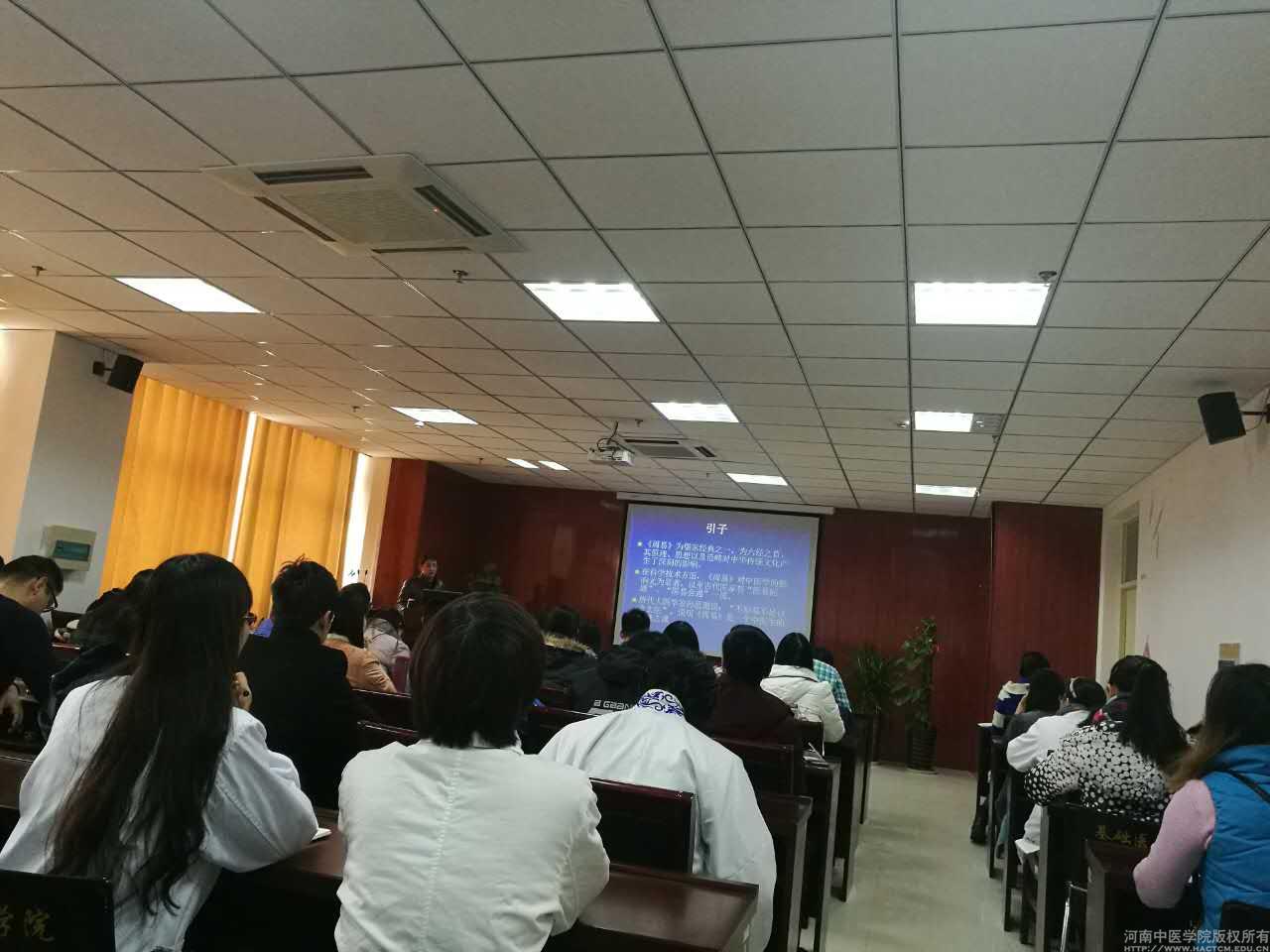 陈玉龙教授首先从周易源流为切入点,结合自己多年来的感悟和教学经验,对周易成书的基本概况做了详尽的介绍,而后,陈教授结合卦象,生动形象地讲解其中奥秘,并在与中医学相互贯通的一些知识点上,深入讲解,使同学们叹为观止,也对我国传统文化的博大精深有了更深的体会。讲座结束之后,陈老师还对同学们在周易研读方面的问题进行了耐心的解答。