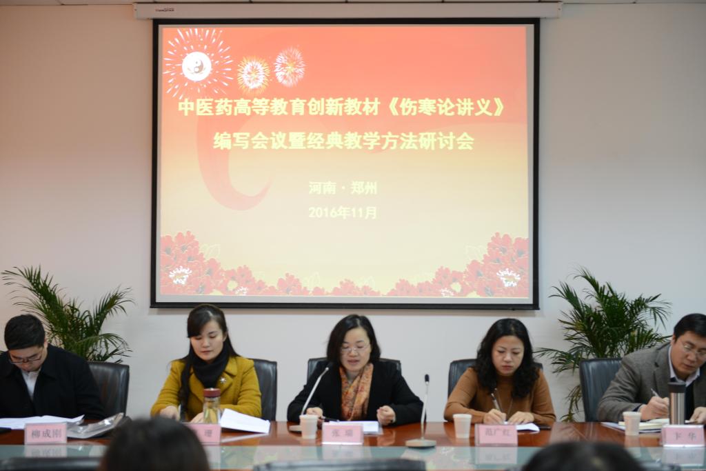 2016年11月26日,中医药高等教育创新教材《伤寒论讲义》编委会暨经典教学方法研讨会在咕咕番 新区召开。咕咕番 教务处张瑞副处长、基础医学院曹珊副院长、河南科学技术出版社医药卫生分社范广红社长、《伤寒论讲义》编委会成员及咕咕番 部分教师代表参加了此次会议。