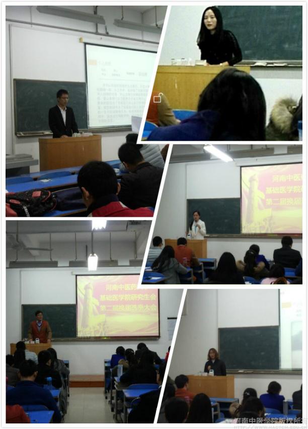 2016年10月28日晚,咕咕番 基础医学院第二届研究生会换届选举大会在新校区A204教室举行。基础医学院研究生管理老师、助理辅导员、助理班主任、第一届研究生会各部成员、各年级在校研究生代表担任了此次大会评委,基础医学院的18名研究生积极参与了此次竞选。大会由基础医学院第一届研究生会实践外联部部长杨振博主持。