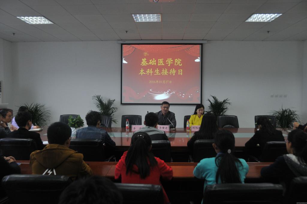 聆听学子心声,走进学子生活。2016年10月27日中午,基础医学院于四楼会议室开展本科生接待日活动,基础医学院副院长李肇进、分团委副书记刘旭初与2015、2016级学生代表见面交流。