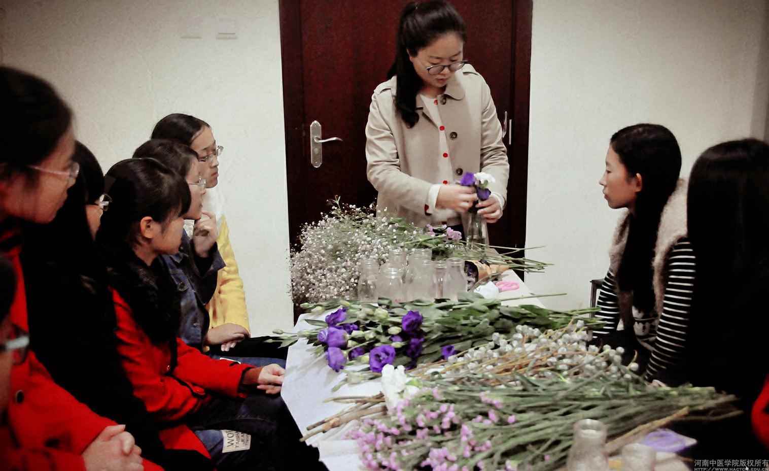 秋意渐浓,为了丰富学生精神文化生活,提高艺术修养,减轻学习压力,10月26日下午,基础医学院分团委于学院心理活动室开展“秋日乐活花艺课”。花艺课由分团委戴冰星老师主讲,“博雅崇实”实践班全体学生参加了本次课堂。