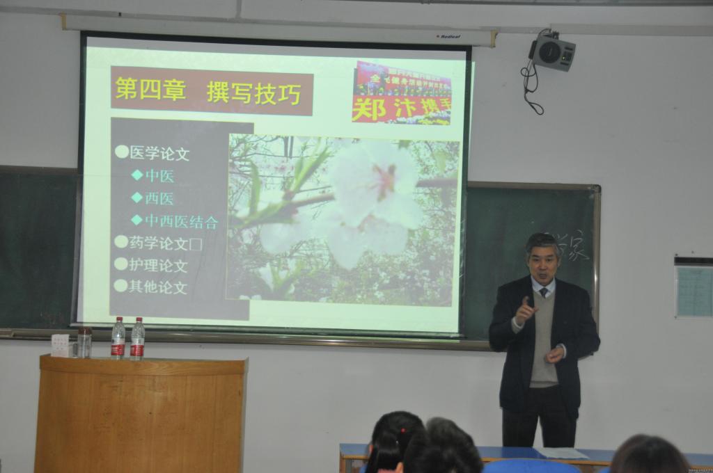 讲座现场,李教授结合同学们所提的问题,分别针对“名老中医经验总结论文如何撰写”“医案医话论文如何撰写”“实验研究论文如何撰写”“论文发表”加以讲解。李教授抛出“《卡马西平对大鼠多脏器的损害与重要防护》这一研究课题可以发表多少篇论文?”的问题展开现场互动,巧妙传授了实验研究论文撰写的技巧。李教授以幽默的语言、生动的讲解使同学们深受启发。讲座后,李教授与在场同学展开交流,对学生日后的专业发展提出了实质性的建议,同学们纷纷表示获益良多。