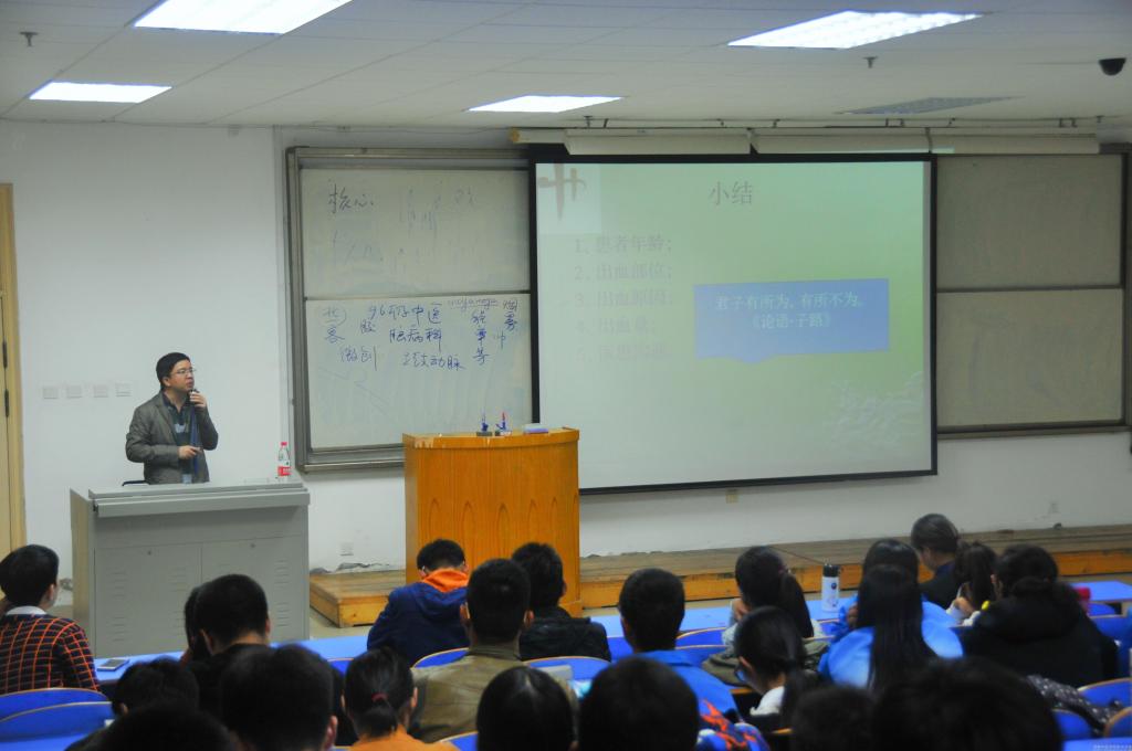 讲座中,程老师首先结合自身求学、文献研究及工作经历围绕脑血管疾病的分类、现状和诊治等方面,以缜密的研究思路、生动有趣的诊疗案例、深入浅出的授课风格向同学们深刻剖析了“脑血管疾病治疗新技术”在临床中的应用及良好效果,并着重从饮食、生活作息等方面讲述了脑血管疾病的预防。随后,又向同学们简要介绍了现代医学中的微创医学,鼓励同学们以独特的方法研究医术、以执着的态度投身医学的严谨求学和勇于实践的精神,为医疗卫生事业的发展做出应有的贡献。最后,程老师对同学们提出的问题进行了详细的解答,使在座学生获益良多。