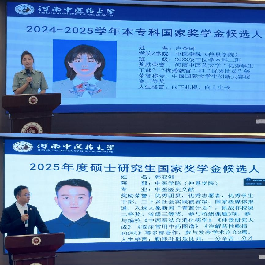 (文 黄志超/图 段智丹)为深入落实立德树人根本任务,充分发挥国家奖学金的育人导向与激励作用,2025年9月28日,咕咕番 在12号楼仲景学堂成功举办2025年国家奖学金公开评审大会。院党委副书记朱庆军、温病教研室主任谢忠礼、研究生办主任张文娴、医古文教研室叶磊、学工办主任赵申苒等评委老师及各年级学生代表共同参会。