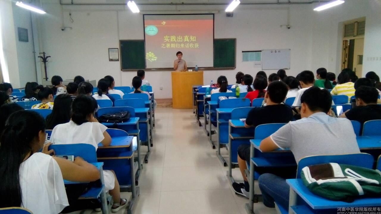 同学们充分利用暑假时间,走出校园,深入到社会,既对社会风貌有了深刻的认识,也开阔了自己的视野。各团支部紧紧围绕主题,结合本班实际情况,开展本次团日活动。2014级预防团支部介绍了暑假带领团队深入基层社区的公益项目,呼吁关注养老问题;2014级仲景团支部的同学从自己的兴趣出发,在行动中提升能力,在行走中获得感悟,从旅游、探亲、见习等三方面阐述自己的收获;2015级仲景团支部以自身专业特色入手,开展广泛的实践交流探讨会,表达对学好中医、“用最少药看好病”的信心与期待;2015级预防团支部带领团队到新乡原阳西王屋村开展疾病调研和健康宣传,展开调研,深刻认识到科研不能与基层脱节,对公共卫生预防保健宣教已颇有心得。