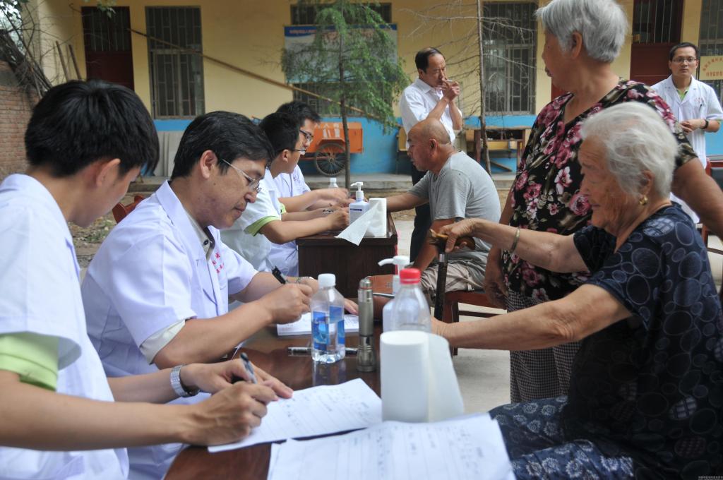 活动前期,小分队程凯、刘旭初两位带队老师与当地政府进行了工作对接,在实地考察了当地情况之后,小分队精心安排了丰富的活动方案。7月7日一早,西王屋村卫生所已经排起了长长的队伍,小分队成员利用自己所学知识以及临床实践的经验,为村民测量血压、血糖,并进行了针灸推拿等辅助治疗,两位随队专家谢忠礼副教授、孙鸿昌博士给前来就诊的每位村民细致地做疾病诊断和用药指导。对行动不便的村民,小分队随队专家入户为农民群众服务。