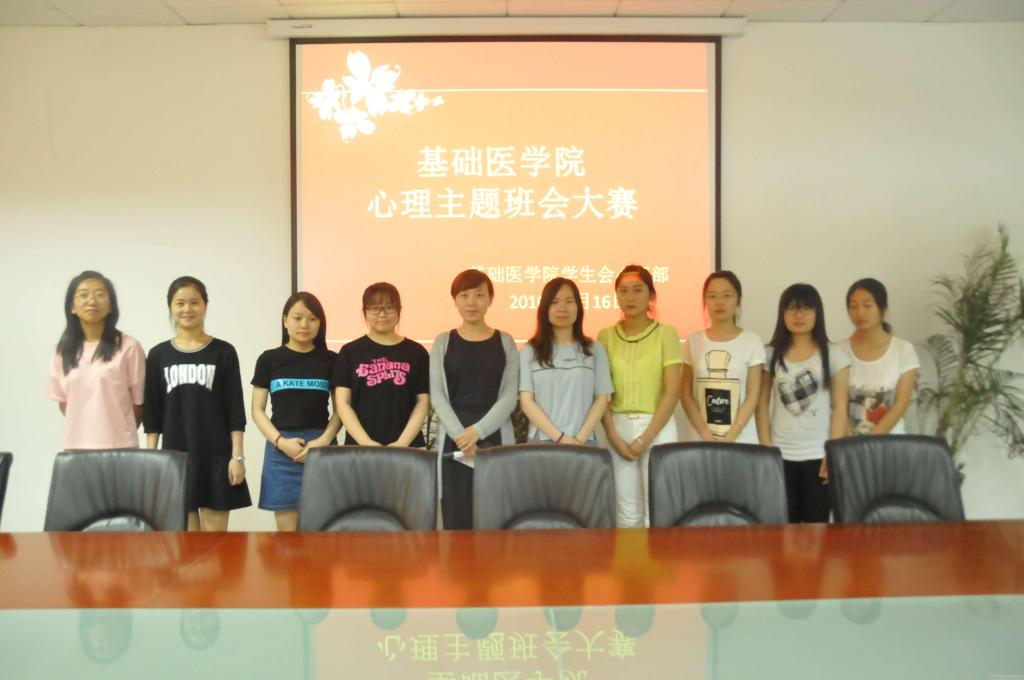 为缓解六月考试季到来引起的紧张情绪,加强同学之间的沟通和交流,基础医学院于6月5日-6月15日以班级为单位,针对各班不同情况开展形式多样的心理主题班会活动,并于6月16日在四楼会议室举办心理主题班会大赛。辅导员心理专员李倩老师、心理部全体成员、各班心理委员参加此次比赛,全体宿舍心理信息员到场观摩。