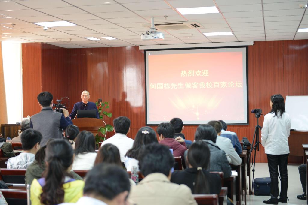 2016年4月11日下午,台湾世界易经研究会会长何国栋先生应邀做客咕咕番 百家论坛,咕咕番 教师、研究生代表100余人到场聆听了报告,讲座由科技处苗明三处长主持。