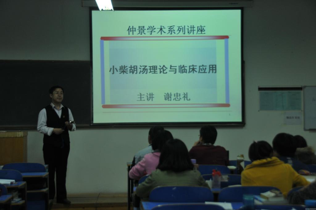 讲座中,谢忠礼老师从《伤寒论》原文出发,以“小柴胡汤方剂组成”为切入点,并结合自身求学、工作经历及临床经验,围绕“小柴胡汤”用药思想、配方规律及临床应用等内容,以专业、生动、风趣的讲解,配以典型的临床病例分析,向同学们深刻剖析了“小柴胡汤”在中医诊疗中的良好效果。讲座后,谢老师还结合多年临床研究心得就“小柴胡汤”具体案例分析、用药剂量、药方活用及半表半里证等问题与在场学生展开深入探讨和交流,并对同学们提出的问题进行了详细的解答,使在座学生获益良多。