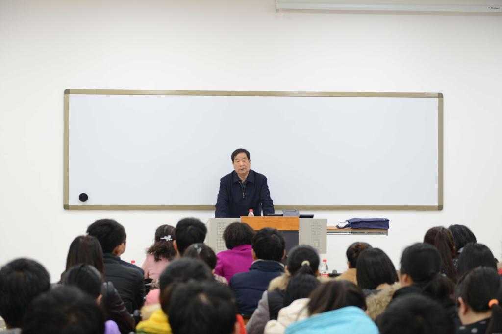 2016年3月2日,基础医学院医学史教研室退休教师王安邦教授应邀在咕咕番 新校区教学楼A105举办了题为“百年中医路”的学术讲座。咕咕番 郑玉玲校长、教务处张大伟处长,基础医学院党政领导、中医医史文献学科教师及仲景班学生到场聆听了讲座。