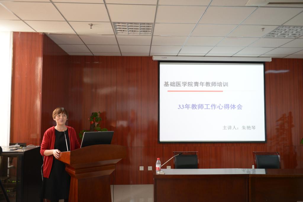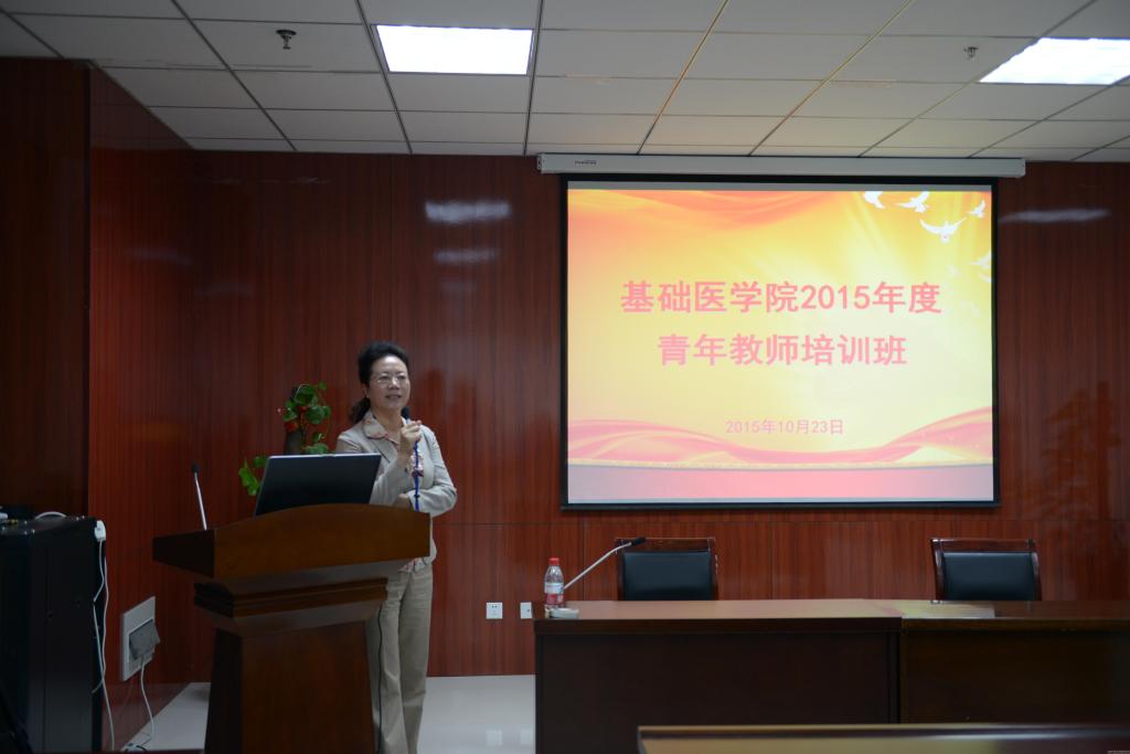 随后的培训中,基础医学院马相奇书记做了“更新观念,和谐发展”的讲座,从师德师风建设方面对青年教师提出期望,希望青年教师做到:爱岗敬业,精神高尚;教书育人,水平高超;为人师表,品行高洁。曹珊副院长和高剑峰副院长分别就教学管理与运行、教学和科研奖励资助政策以及科研工作如何开展等内容,向青年教师进行讲解培训。科技处刘琦老师结合自己的工作经验向青年教师介绍了咕咕番 科研项目申报的类别、申报流程和申报管理流程,方便青年教师们更好的开展科研工作。全国优秀教师、河南省先进工作者、教学名师朱艳琴教授围绕“调心态、能干事、会干事、会减压”四个方面,与青年教师们分享了自己从教33年的工作心得体会,希望青年教师们能够做到快乐工作,感知幸福的生活,使参会者感悟颇深。李肇进副院长向青年教师讲解了学校教职工考勤管理办法、年终考核等管理规章制度,促使青年教师能够更快的适应学校工作。培训结束前,詹向红院长做专题发言,她介绍了基础医学院的发展历史和机构设置情况,并向参加培训的青年教师提出成为一名合格的大学教师应具备的素质:专业知识要深、博学知识要宽、语言表达能力要好、思维能力要强、人格水平要高、教育理念要新。具备这六方面素质就需要做到:不断学习,才能实现理想创造辉煌;博学笃行,为人生长跑注入活力。