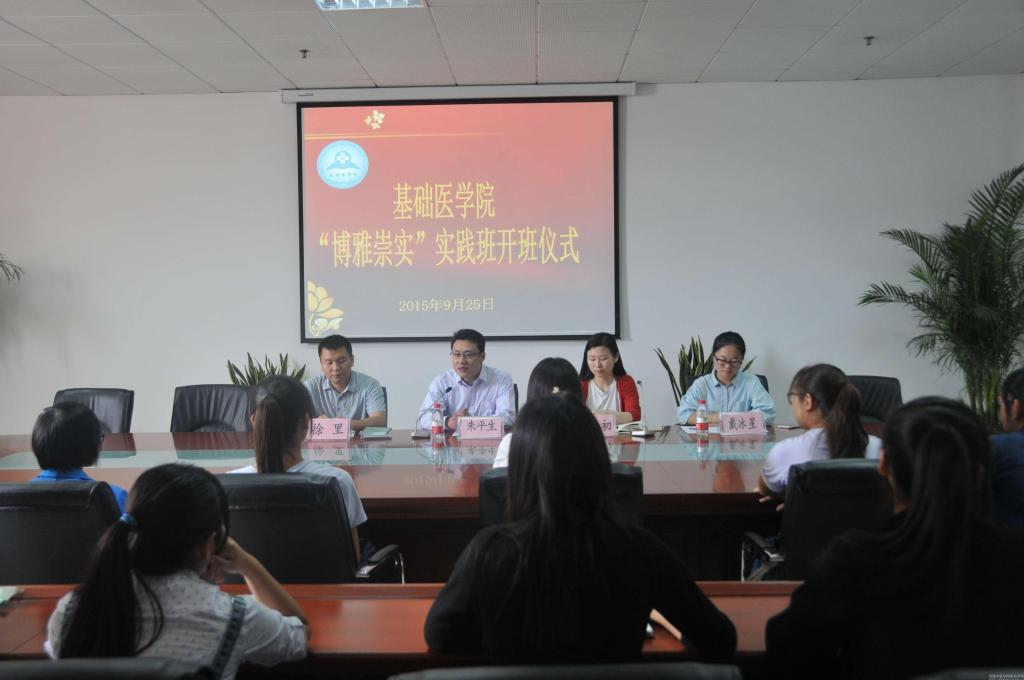 为培养一批知识水平高、专业性强、综合能力突出的当代大学生,以及响应校团委关于在各院系组建精英班的号召,咕咕番 首期“博雅崇实”实践班于9月25日开班。基础医学院党委副书记朱平生、学工办全体辅导员及实践班的24名学员参加了此次开班仪式。