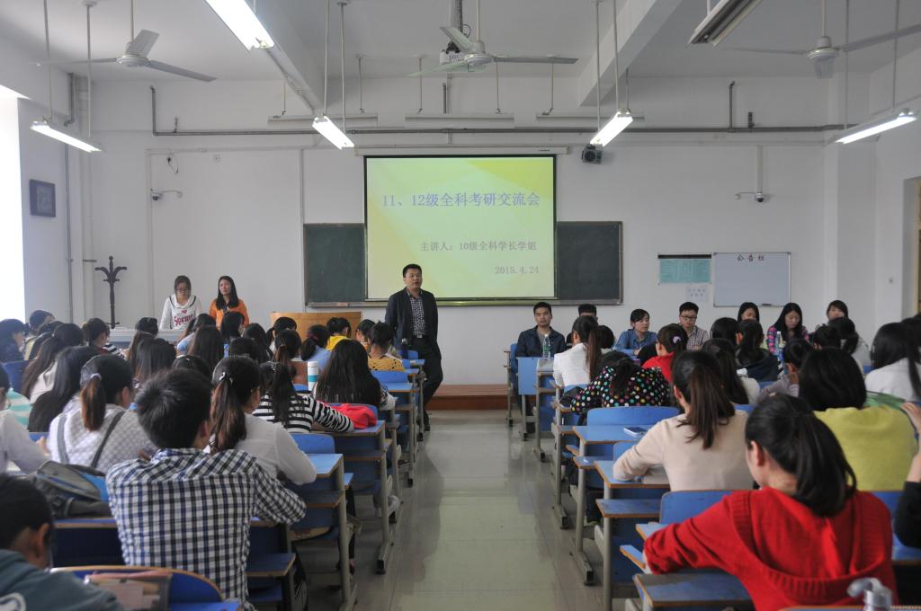 此次交流会,不仅给即将考研的同学提供了宝贵的经验,给立志考研的同学指引了方向,使同学们对考研过程有了一个更具体、更清晰的认识,为今后考研打下坚实的基础;同时开阔了大家思路,促进了班级间的相互学习交流。(基础医学院学工办)