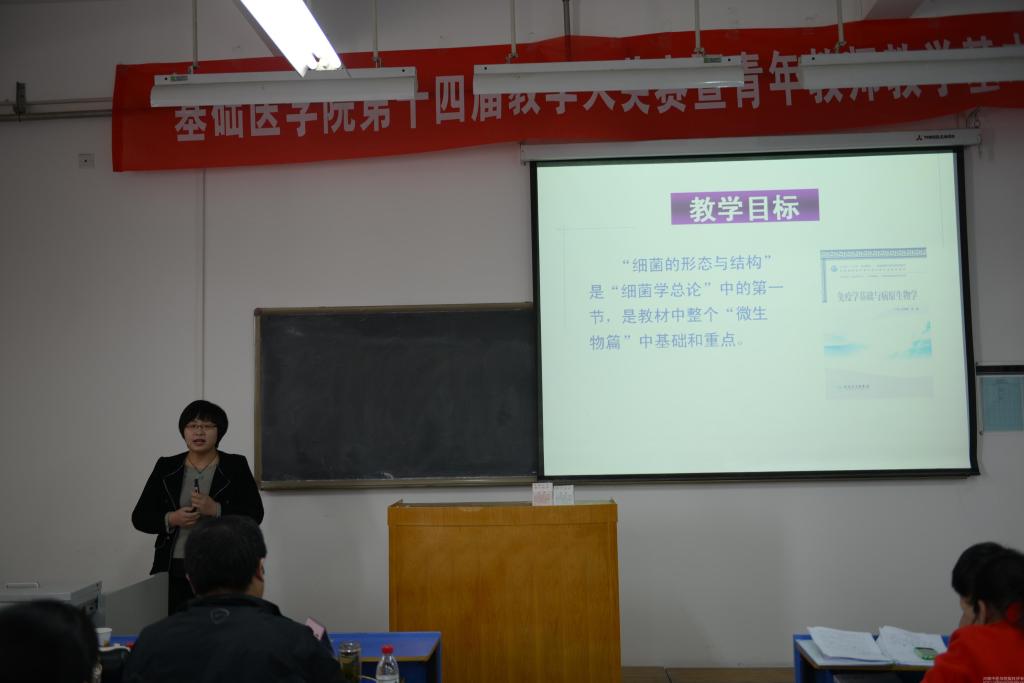 为切实提高青年教师教学能力,并为高级别教学竞赛选拔优秀人才,基础医学院于2015年3月27日在新校区实验教学楼A625成功举办了基础医学院第十四届教学大奖赛暨青年教师教学基本功竞赛。学校教务处张大伟处长、教评中心呼海涛主任,基础医学院党政领导、评委专家、参赛教师及各科室教师代表观摩了大赛。