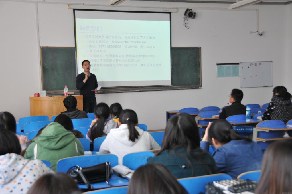 培训会上,孙河龙老师对“挑战杯”大赛的参赛流程、作品申报和评审细则作了深入讲解,并带领同学们回顾了部分“挑战杯”优秀作品的成功案例,结合咕咕番 “挑战杯”项目评比工作经验,就如何取得相对优异成绩向同学们提出了宝贵意见和建议。随后,王亚东同学结合自己亲身参加“挑战杯”并获奖的经历与同学们一起分享:选题要脚踏实地,结合社会热点;合理配备团队成员,增强集体荣誉感和团队意识;认真完善作品,减少作品瑕疵等。