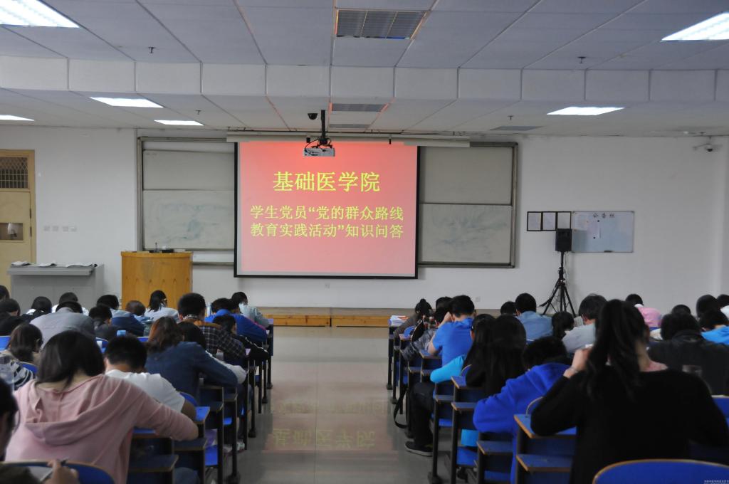 为了深入贯彻执行党的群众路线教育实践活动,夯实基础医学院学生党员对本次教育实践活动的认识和学习,加深学生党员对党的群众路线教育实践活动重要意义的认识,5月4日基础医学院学工办组织全体学生党员和预备党员在教学实验大楼四楼阶梯教室,举行了以“学党章、学焦裕禄精神,践行群众路线”为主题的党的群众路线教育实践活动知识问答竞赛活动。