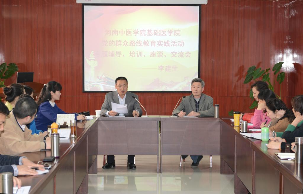 李建生副校长指出,开展群众路线教育实践活动要紧紧围绕学校的中心工作,以活动促发展,凝心聚力推进改革创新,促进学校和基础医学院科学发展。强调开展专题教育实践活动要紧扣“为民务实清廉”主题,按照总要求认真抓好“学习教育、听取意见”、“查摆问题、开展批评”、“整改落实、建章立制”三个环节。通过深入学习、深刻反思,打牢纠正“四风”、改进作风的思想根基;要聚焦“四风”、建设和发展及稳定问题,抓好整改落实、完善制度、理顺机制,改进作风,提升能力和水平,促进建设和发展。通过教育实践活动,达到“全体党员尤其是党员干部党性进一步增强、素质进一步提高、能力进一步提升、作风进一步改进,领导班子更加团结,工作环境更加和谐,把握好大方向,确保形成正能量”的效果。并就基层党组织、师德师风、教风、学风、管理服务作风建设,提出具体要求,给予指导。