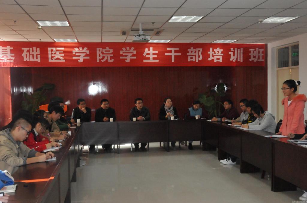 为加强对学生干部的教育和培养,提高学生干部的理论水平和工作能力,进一步深化学习型学生干部队伍建设,基础医学院于11月4日至11月18日举办了以“建设学习型学生干部队伍”为主题的第十期学生干部培训班。本次培训班以分层培训为原则,根据不同学生干部的岗位职责和工作特点进行有针对性的培训。此次培训共有学生会新进干事培训、宿舍长培训、主题讲座培训、班长论坛及素质拓展五个主要内容。